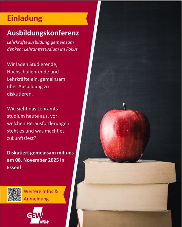 Liebe Kolleginnen und Kollegen, wir laden euch ein, an dieser Veranstaltung teilzunehmen: Ausbildungskonferenz (8. November 10-16 Uhr in Essen) Wir laden Studierende, Hochschullehrende und Lehrkräfte herzlich ein, gemeinsam über die…